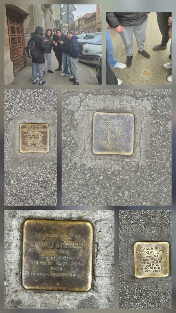 Povodom obilježavanja Dana sjećanja na žrtve holokausta, 27.siječnja 2026. članovi Tesline povijesne družine obišli su postavljene “kamene spoticanja” u obližnjim ulicama naše škole. Na taj su način oživjeli uspomenu na imena žrtava koje su se zatekle ili bile vezane uz mjesta na kojima su postavljene pločice, kao spomen na njihovu tragičnu sudbinu.