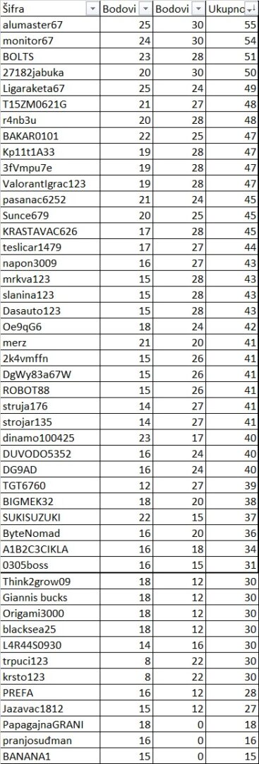 Molimo da učenici zaključno s 35 mjestom (31 bod) dođu na sastanak u petak 21.11.2025. u dvoranu 113 u 13:45.